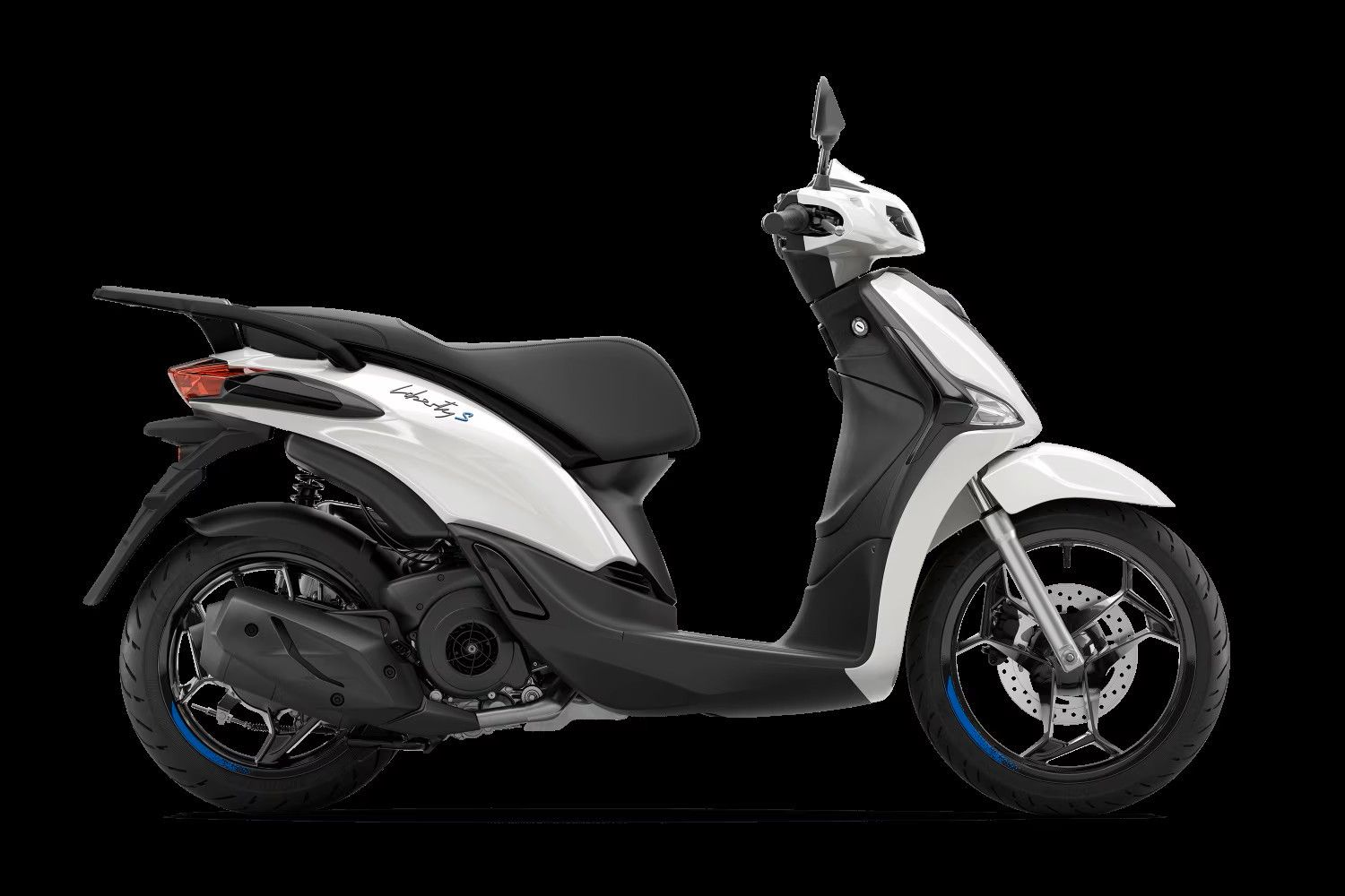Ein hochmoderner KlassikerDie kühne Persönlichkeit des Piaggio Liberty S zeigt sich in seinen dynamischen Farben, doch es sind die Details, die den Unterschied machen: Hochglänzende schwarze Akzente schmücken die Zierleisten, die Einfassung des Rücklichts, die Blinker und das Logo, während glänzend blaue Akzente die Einfassung der „Krawatte“ am Beinschild sowie die dunklen Felgen mit 3 geteilten Speichen hervorheben. Der moderne LED-Scheinwerfer mit horizontalem Design und das wabenförmige Gitter der zentralen Krawatte verleihen der Front ein markantes Aussehen, das dennoch dem harmonischen Stil des Piaggio Liberty treu bleibt.