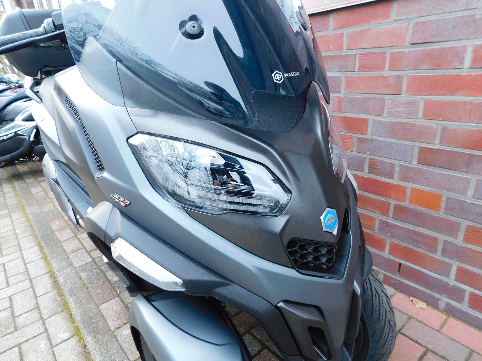 Der Piaggio MP3 530 Exclusive ist ganz einfach das Beste, was es in Sachen urbanes Fahren gibt. Er vereint die neuesten technologischen Innovationen von Piaggio mit einem Design, das eindeutig von der Welt der Automobile inspiriert ist. Sein Aussehen wird von der markanten Front mit ihren ultramodernen Linien bestimmt, die von den Full-LED-Scheinwerfern unterstrichen werden.